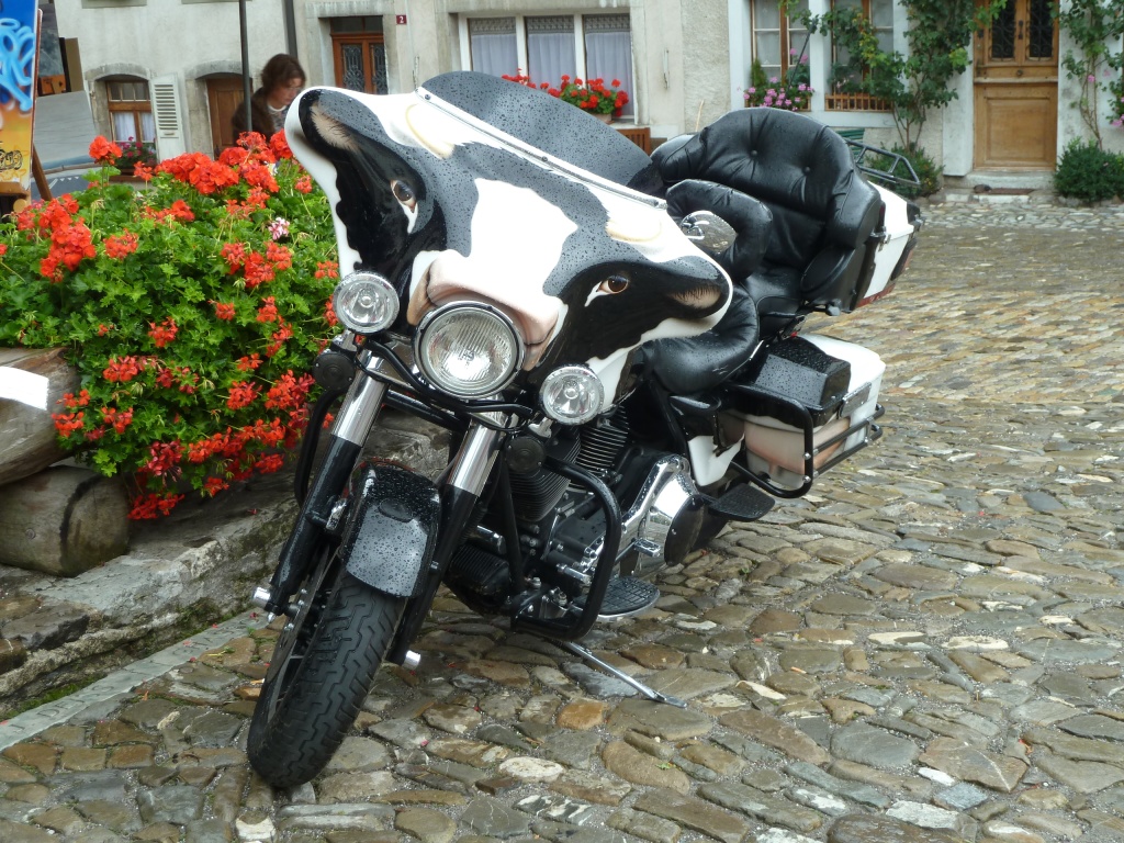 Kuh-Harley auf der Art & Motorcycle Ausstellung in Gručres