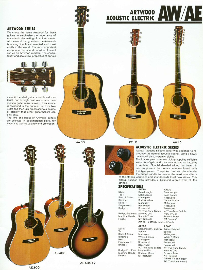 (1983) Meine '83er Ibanez AE400 (made in Japan, hier der Prospekt von 1983) ist die erste Gitarre, die sich mich ausgesucht hat und mir zugelaufen ist (mit unserem Freund Peter als Überbringer). Das Modell ist eher selten, nach über 30 Jahren allemal, sie hat eine Decke aus Fichte, das Griffbrett ist aus Palisander, die Seiten und der Hals sind aus Mahagoni, was mir in Punkto Bespielbarkeit sehr entgegenkommt und für mich angenehmer ist als Ahorn. Die Decke hat in Ermangelung eines Schlagbretts am Schallloch einige Blessuren, sonst ist das Instrument gut in Schuss. Ich spiele die AE400 mit Ernie Ball oder D'Addario Saiten und der Klang ist recht variabel, ich bilde mir ein in den kühlen, frühen Morgenstunden klingt sie hell und kratzig, am Abend eher warm und voll (hick). Regenwetter mag die AE gar nicht, dann ist sie wie ich schnell verstimmt. Manchmal harmonieren wir, manchmal kämpfen wir miteinander, aber wir sind eine Einheit und spielen den Blues. Yeah! Für die AE400 habe ich einen Gator Koffer gekauft nachdem ich nach der Volkshochschulstunde die Tasche fast in den Türrahmen geknallt hätte. Die Liedbegleitung im Volkshochschulkurs ist auch der Haupteinsatzzweck der Ibanez. |