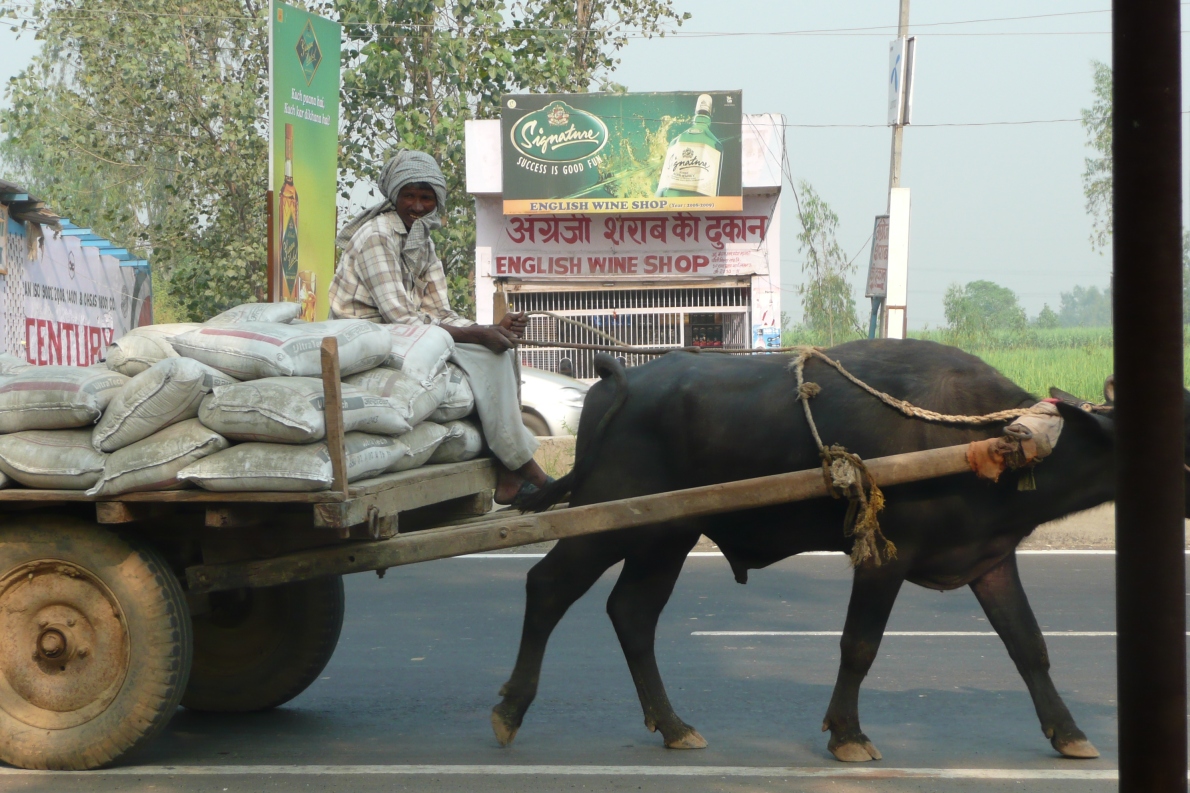 Nicht jeder auf dem NH58 hat es so eilig wie wir... im Hintergrund ein typischer, dezenter Alkohol-Laden