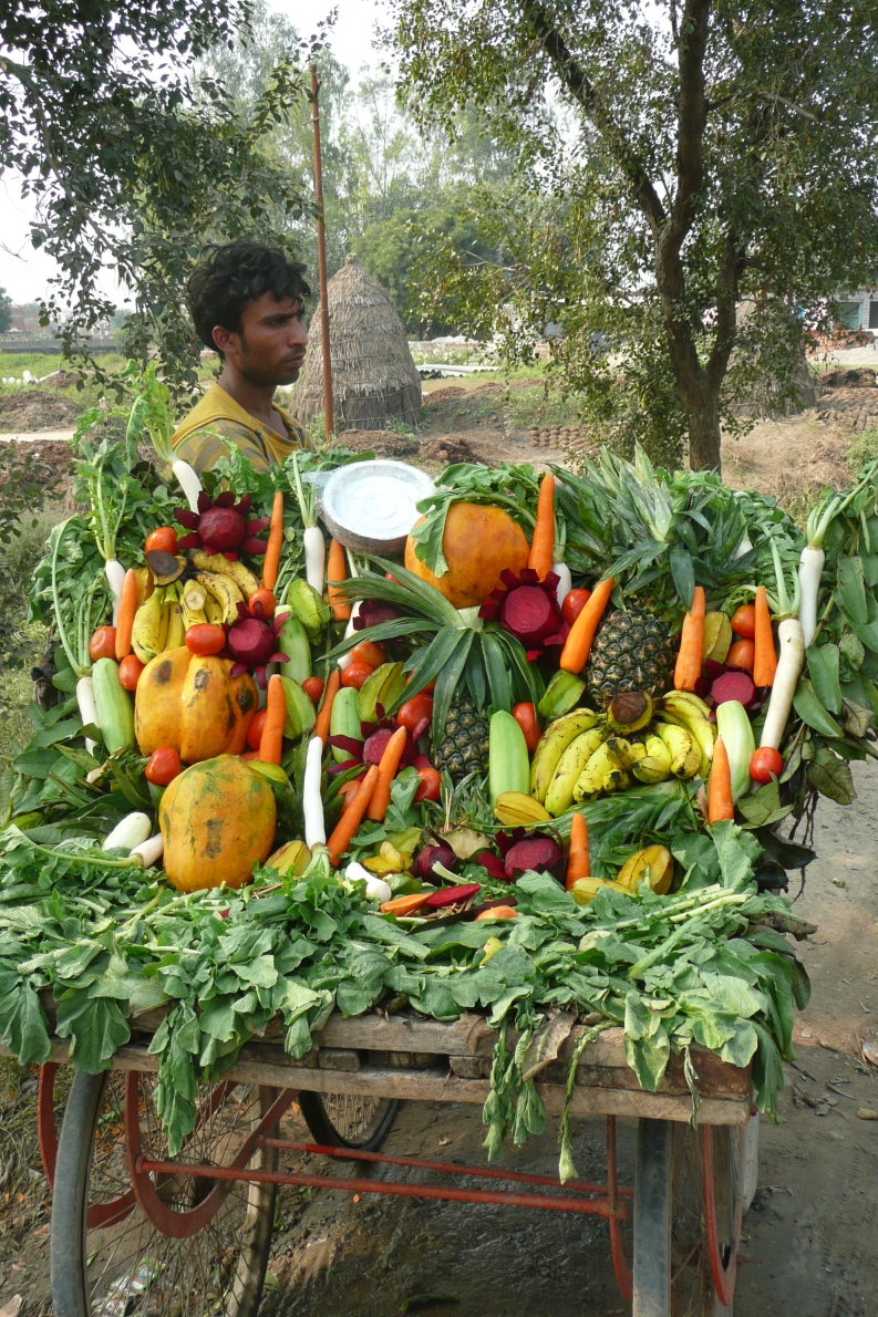 Frischer Obst- und Gemüsesalat am Straßenrand (NH58). Nicht ohne Risiko aber sehr lecker!