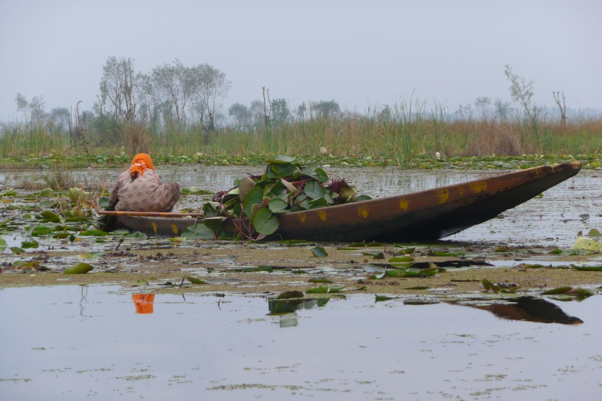 Lotos-Ernte auf dem Lake Negeen, Srinagar (JK)