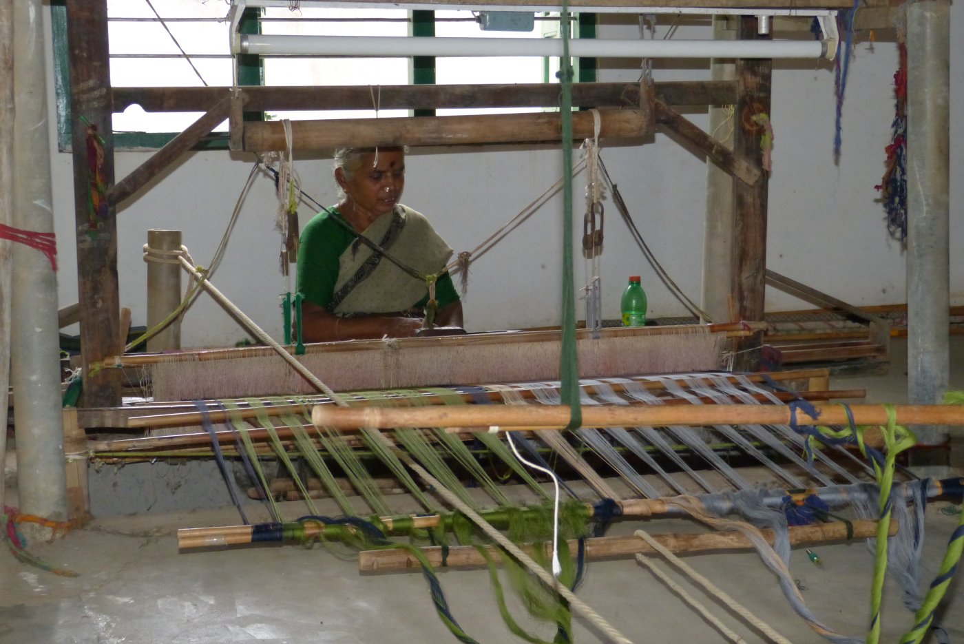 Weberei zur Herstelllung von Stoffen mit traditionellem Karomuster, Chettinad