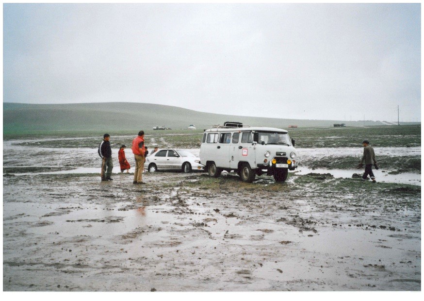 schlammige Piste nach einem Regentag - wir helfen einem Nicht-Allrad-Fahrzeug