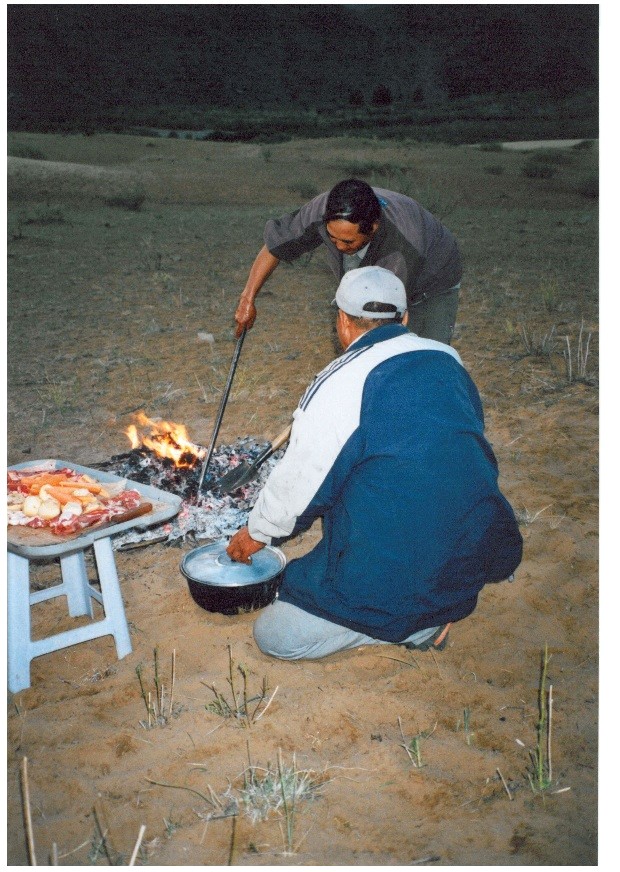 Suche und Tumru kochen Bodog (Schafsfleisch mit heißen Steinen gegart)