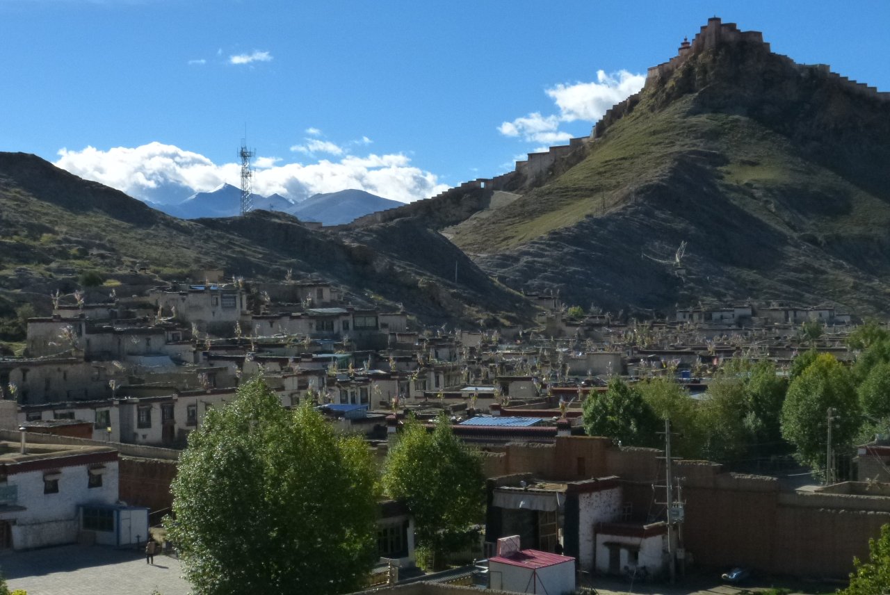 Dzong-Festung über Gyantse von der Stupa des Klosters fotografiert