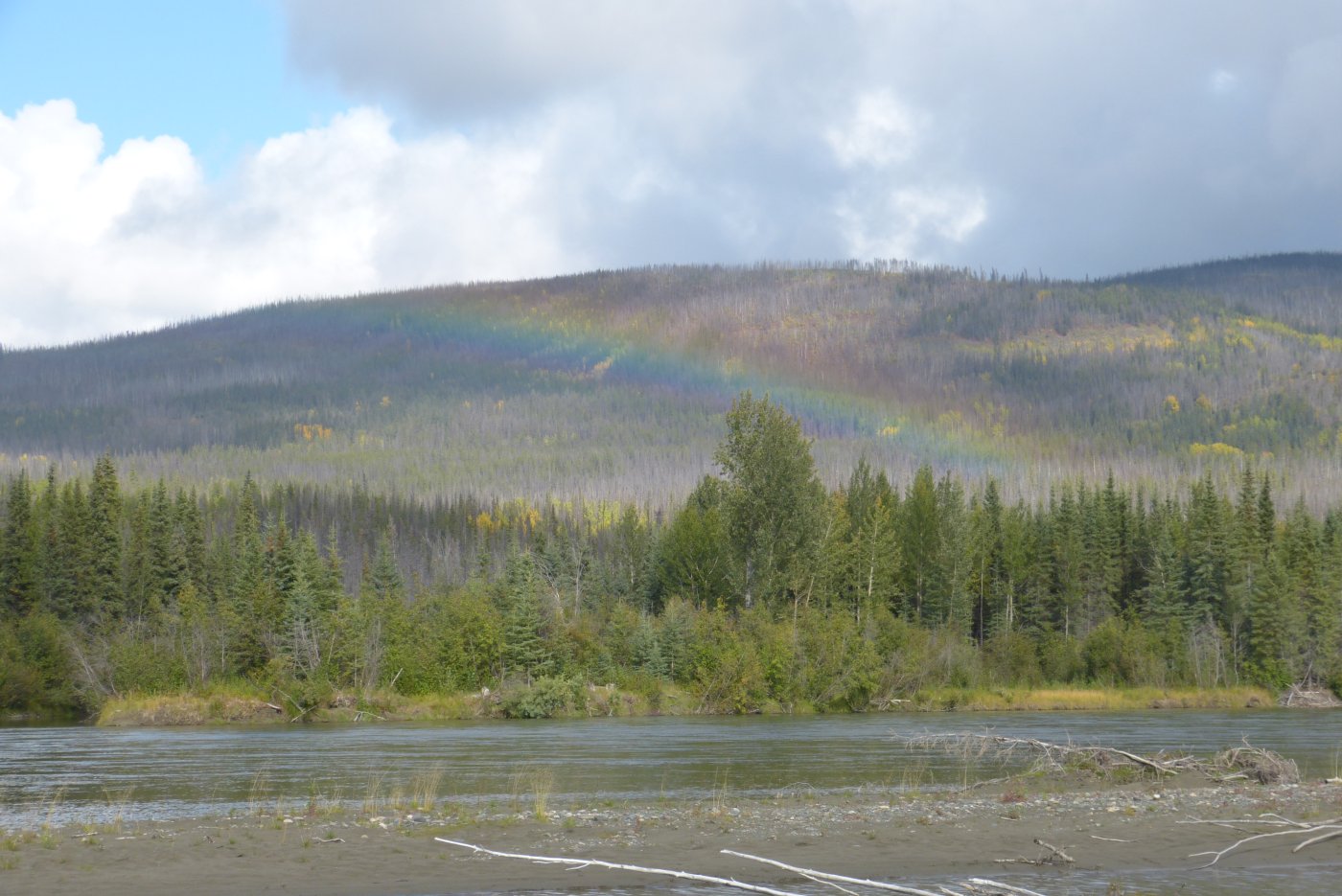 Regenbogen über dem Teslin