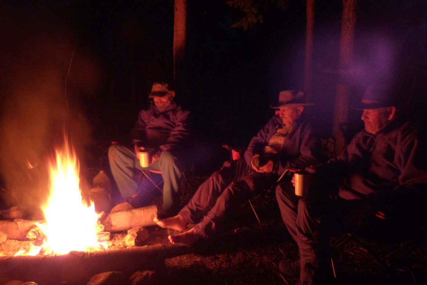 der Tag klingt am Lagerfeuer in Big Salmon Village aus